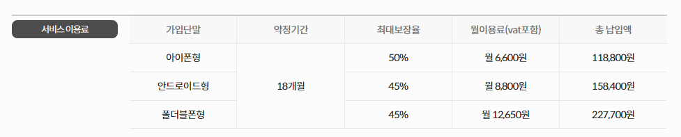 참고해야할 부분은 kt m 자급제폰 보상 서비스는 18개월 이용 후 핸드폰을 반납했을 때 최대 보장율이 높으니 18개월 이용을 추천드립니다. 가격은 월12,650원 총 227,700원입니다.