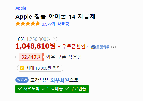 현재는 다나와 사이트에서 z플립 5 최저가 판매 사이트는 G마켓이지만 쿠팡에서는 로켓와우 회원 전용(월 4,990원) 할인을 통해 다나와 사이트에 나와있는 가격보다 저렴하게 판매하는 경우가 많아 다나와 사이트와 쿠팡 두 사이트를 꼭 비교해서 가격을 확인해야 합니다.